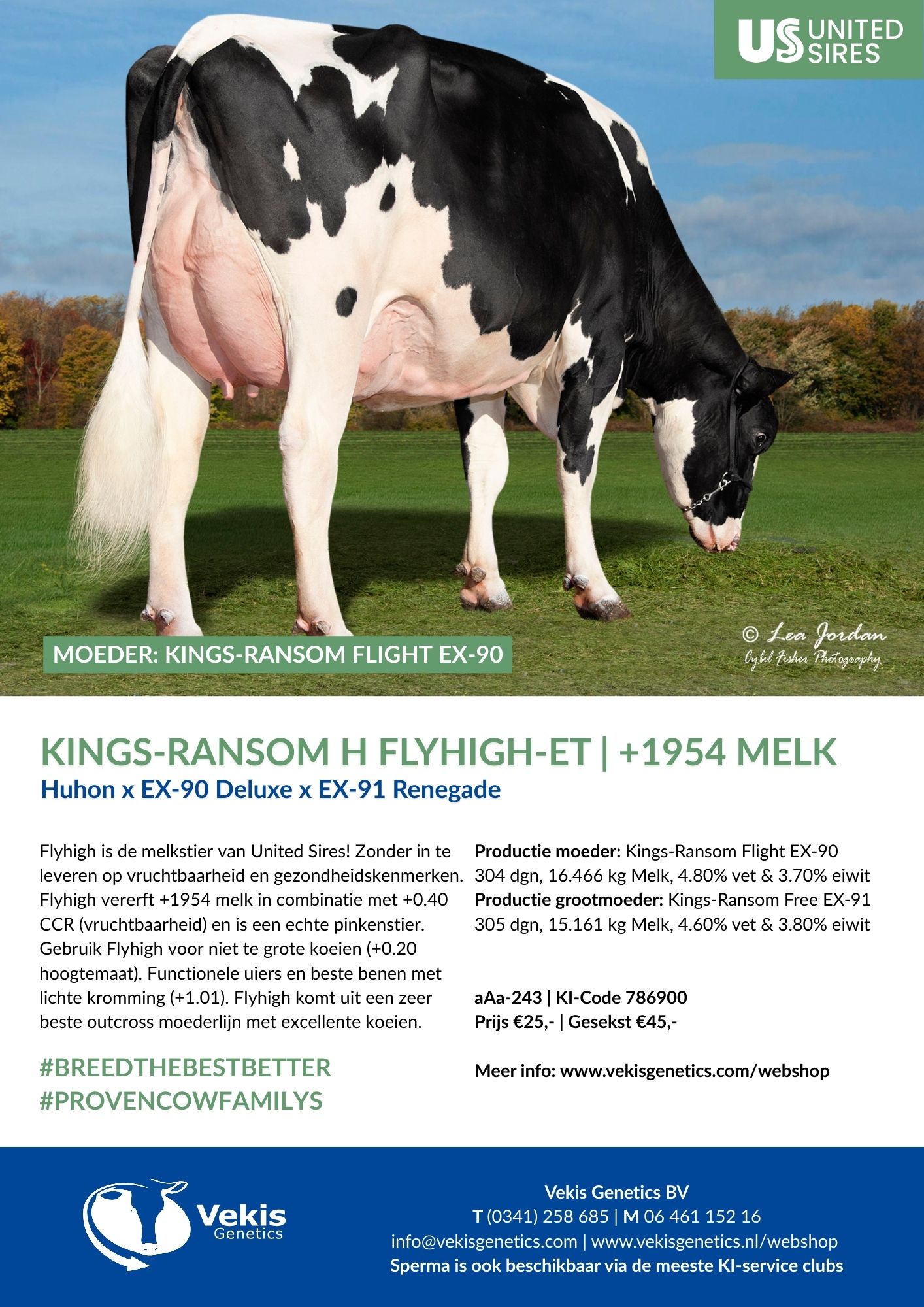 Flyhigh is DE melkstier van United Sires. Het mooie aan Flyhigh is dat in de moederlijn torenhoge gehaltes tegenkomen.