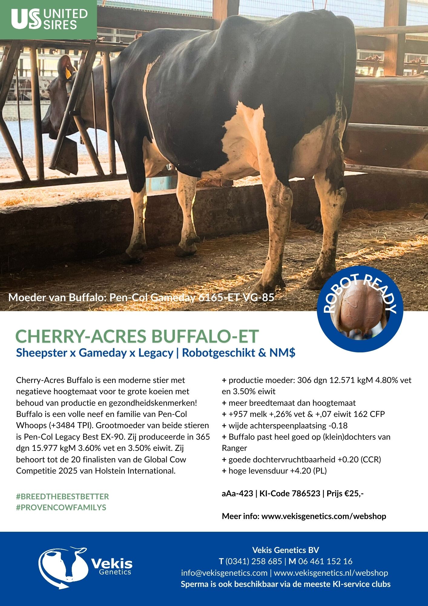 De grootmoeder is de met 90 punten ingeschreven Kings-Ransom Dakota. Zij maakt enorm beste lijsten met een hoog vetgehalte en zij is de moeder van fokstier Kings-Ransom Dynasty. Dat geeft vertrouwen!