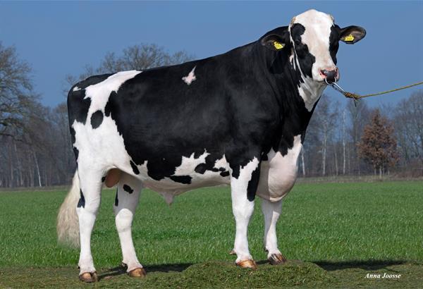 Bij familie van Veelen bestaat inmiddels een groot deel van de 600-koppige veestapel uit koeien van deze familie! Wat opvalt is de enorme kracht en balans in de koeien en de ruim bovengemiddelde lactatiewaardes!